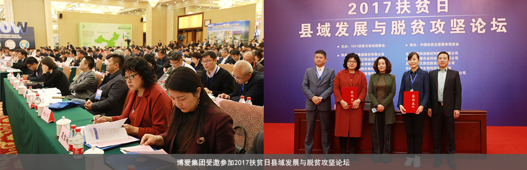 2017年10月10日,受國務院扶貧辦委托、由中國扶貧志愿服務促進會承辦的“2017扶貧日縣域發(fā)展與脫貧攻堅論壇”,在北京會議中心舉行,會議圍繞產(chǎn)業(yè)扶貧、就業(yè)扶貧、消費扶貧、健康扶貧等項目進行深入交流和洽談對接。天津博愛醫(yī)藥集團董事長夏雪城女士、副總裁梁金昌先生受邀出席了此次活動。