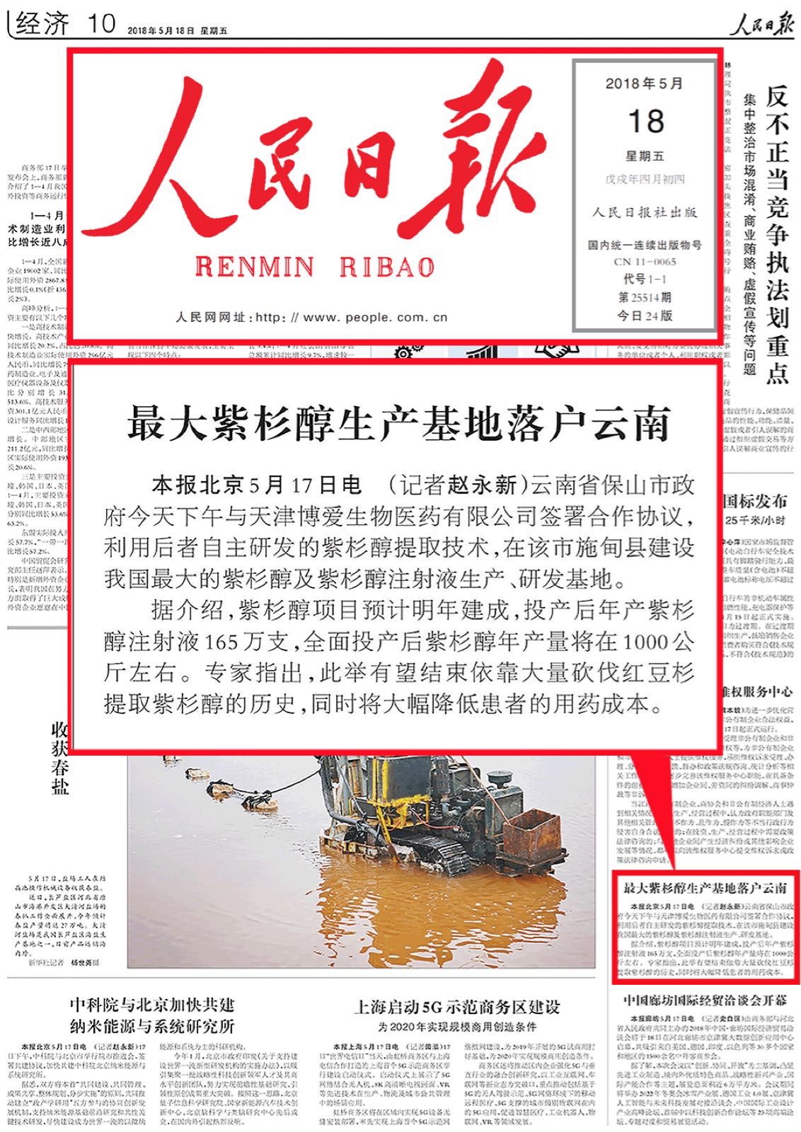 本報北京5月17日電 (記者趙永新)云南省保山市政府今天下午與天津博愛生物醫(yī)藥有限公司簽署合作協(xié)議,利用后者自主研發(fā)的紫杉醇提取技術(shù),在該市施甸縣建設(shè)我國最大的紫杉醇及紫杉醇注射液生產(chǎn)、研發(fā)基地。