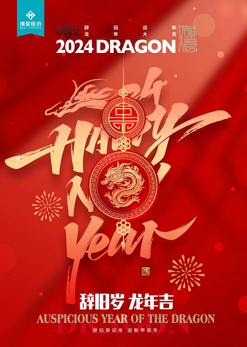 一元復(fù)始,萬象更新。辭舊歲,龍年吉。博愛醫(yī)藥集團(tuán)提前預(yù)祝您“新年快樂”!